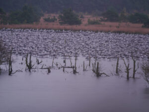 Die Nacht verbringen die Kraniche im Wasser, geschützt vor ihren Feinden.